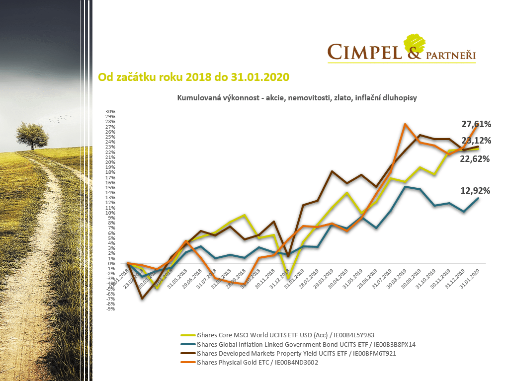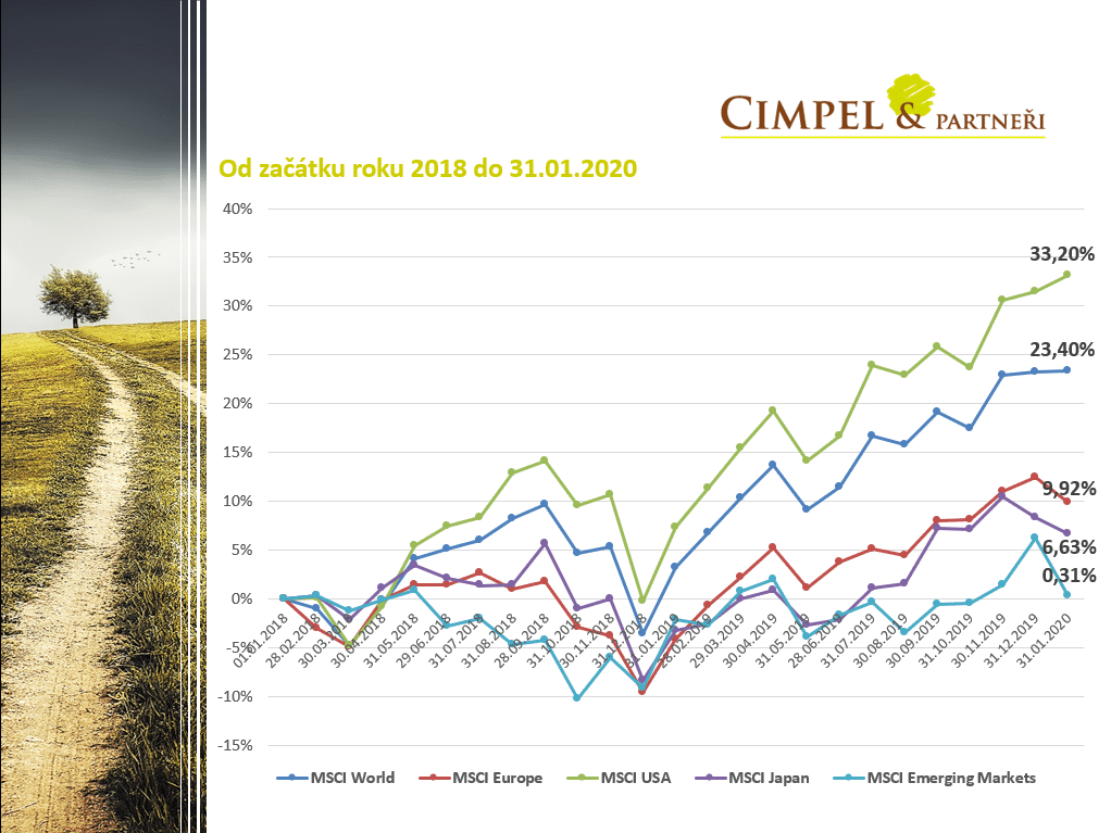 Dan: Máme za sebou leden, krátký časový úsek, úsek, který nám hodně ovlivňují média a médii nafouklé bubliny. Můžeme vidět, že hlavní třídy akcií se pohybovaly kolem 0, významný pokles vidíme na rozvíjejících se trzích a to je zrovna dané těmi médii, americko-čínskou obchodní dohodou, corona virem atp.