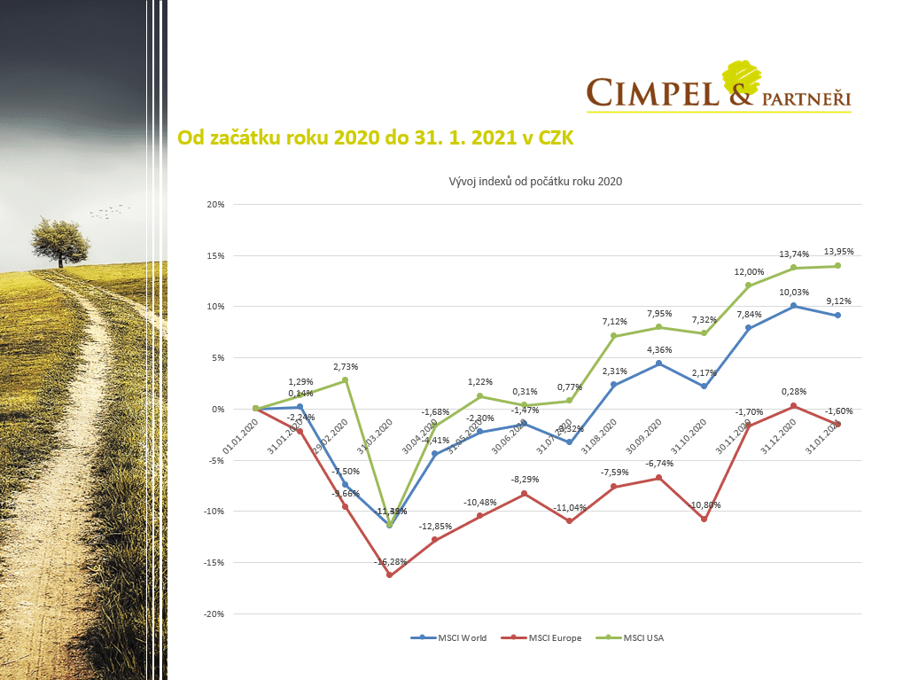 Jiří: Ty jsi zmínil americké volby, myslím si, že důležitou lednovou zprávou bylo, že proběhlo předání moci ve Spojených státech, bohužel se to neobešlo bez konfliktu, ale proběhlo, ujal se role nový prezident a nás teď, doufejme, čeká 12 měsíců, které pro finanční trhy po volbě amerického prezidenta bývaly za těch posledních 10 cyklů pozitivní, tak snad i tentokrát se historie zopakuje.