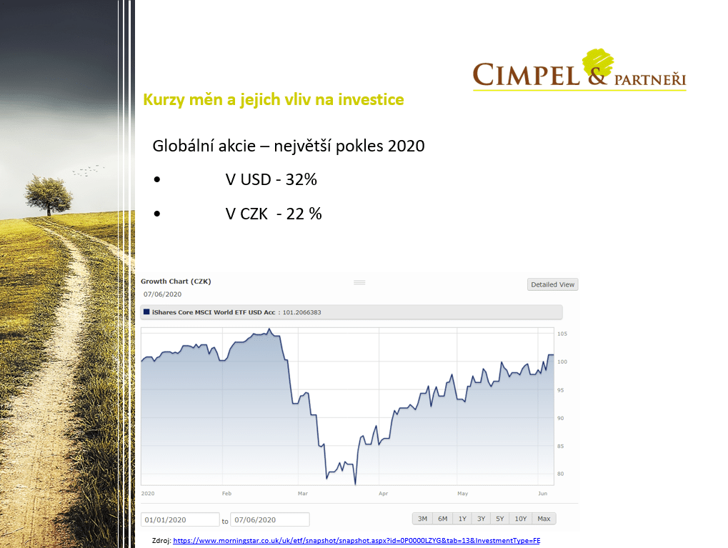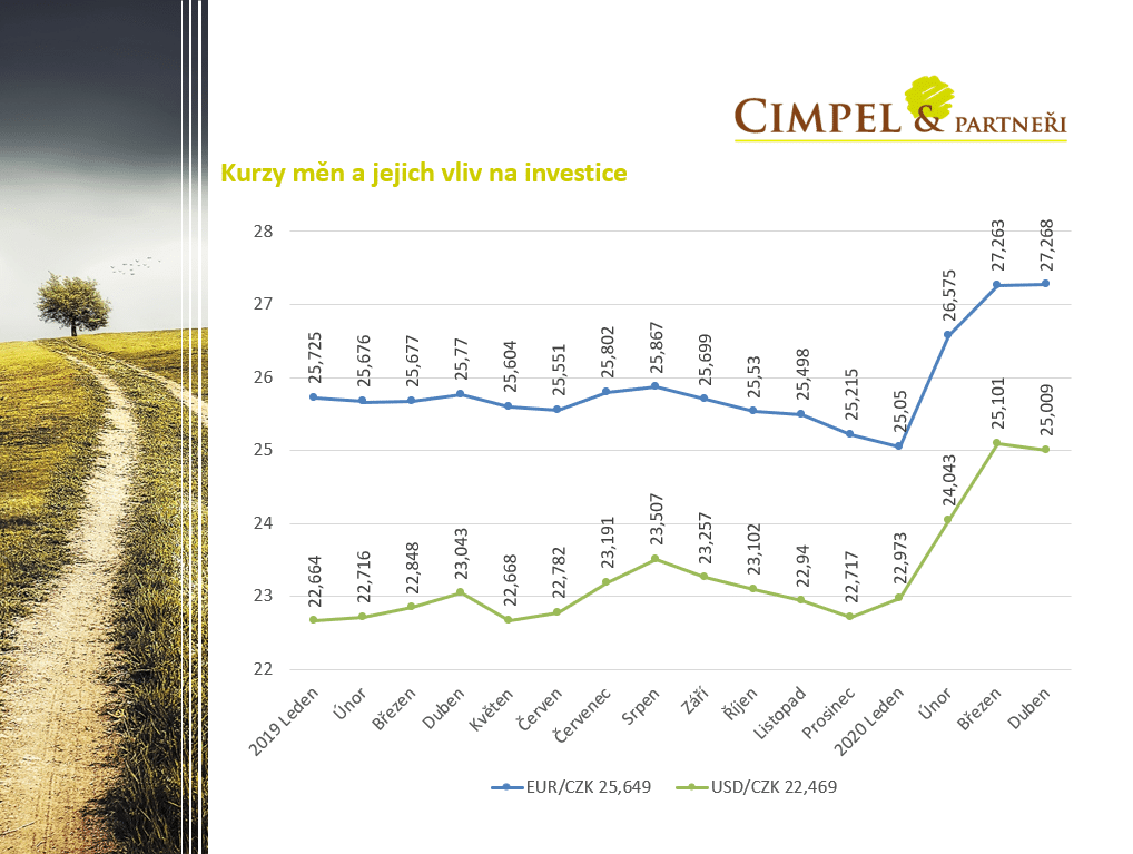 Jiří: Měny jsou velká neznámá, nikdo si netroufne sofistikovaně odhadovat, kde bude kurz eura nebo dolaru vůči koruně za rok, takže se necháme překvapit. Ale ukázalo se, že dolar je bezpečným přístavem, kam investoři utíkají v dobách nejistoty a to nám pomáhá chránit investice a to je jedním z těch našich dlouhodobých cílů a obecně jeden z cílů všech dlouhodobých investorů.