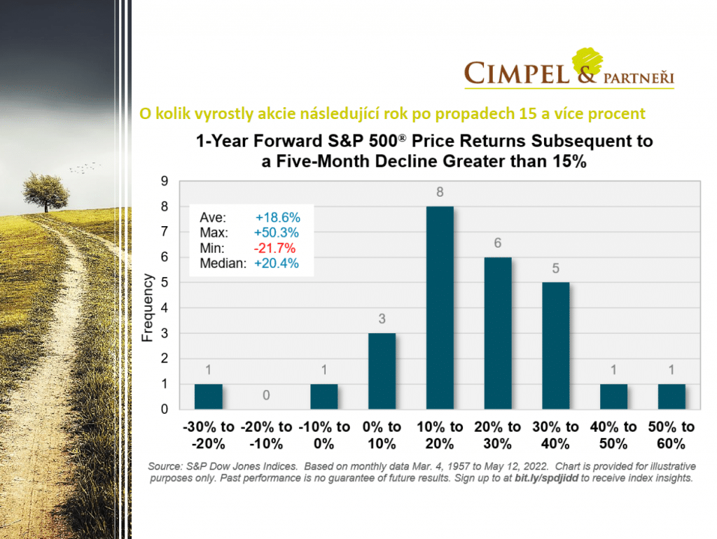 Když se podíváme na trh v trochu delším časovém horizontu, asi nejzajímavější, co můžeme vidět, je, že v tuhle chvíli můžeme nakupovat cenné papíry, třeba americké nebo globální akcie, za ceny, za které se obchodovaly před přibližně 12 měsíci. To je trochu okno do minulosti. Pokud jste si před rokem nebo půlrokem říkali: „Já jsem měl nakoupit v půlce roku, když ty ceny byly ještě tam, kde byly.“, teď máte druhou šanci. Samozřejmě tím neříkám, že nemůže dojít k tomu, že za měsíc za dva uvidíme cenné papíry ještě o kousek níž. Ale tu příležitost nakoupit za ceny, které byly rok zpátky, už vám nikdo nevezme. Té se můžete určitě chopit.