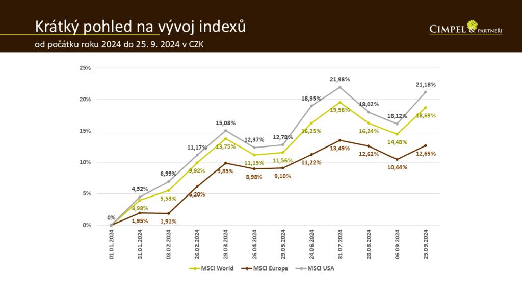 Jinak můžeme vidět, že spolu s akciemi a zlatem posílily i reity a udržely si tempo růstu. Pro ně je samozřejmě významným signálem právě začátek snižování sazeb a můžeme očekávat, že pozitivní reakce na tento vývoj bude přicházet dál. Předpokládáme takovouto reakci i na úrovni dluhopisových pozic, kde se zatím ještě v září nepromítla, ale čekáme, že přijde v dalších týdnech.