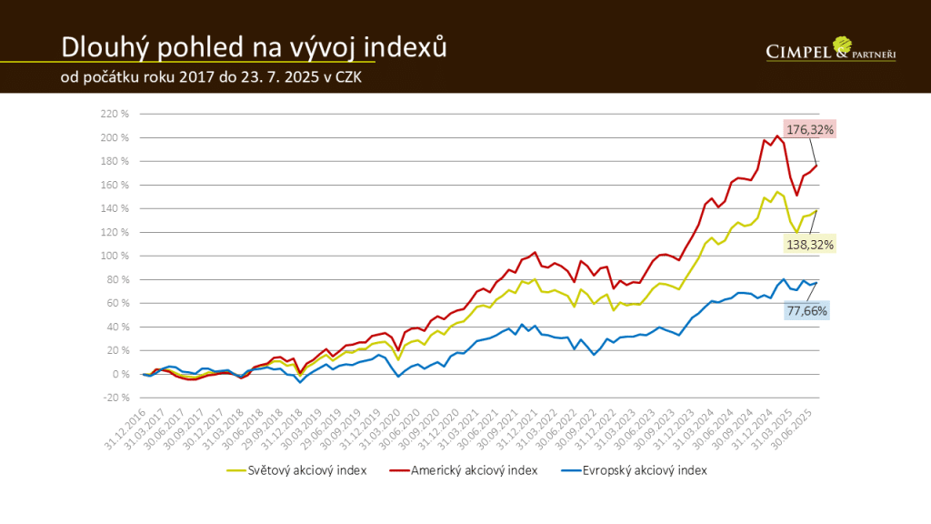 Pokud si chcete poslechnout rozšířenou verzi Aktualit z finančních trhů, kterou jsme točili pro náš Investiční podcast: Cesta rentiéra, můžete si ji poslechnout na SoundCloud: Investiční výhledy C&P srpen 2025 nebo na youtube: Investiční výhledy C&P srpen 2025.