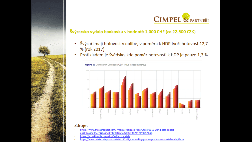 Dan: Mě zaujal na Patrii článek, že Švýcaři vydali bankovku v nominální hodnotě 1.000 CHF, to je asi 22.000 Kč, což je pro nás až nepředstavitelné. Nicméně tam je to běžné, lidé jsou na to zvyklí – překvapivě i ty mladší generace. Byl na to průzkum a ačkoli používají bezhotovostní transakce, je tam běžné, že tam lidi tu hotovost vždycky u sebe mají a vždycky jsou schopní s ní zaplatit. Druhým extrémem je tábor Švédů, kteří naopak mají tendence nevydávat nové bankovky, ale stahovat ty staré a jít tou bezhotovostní cestou.