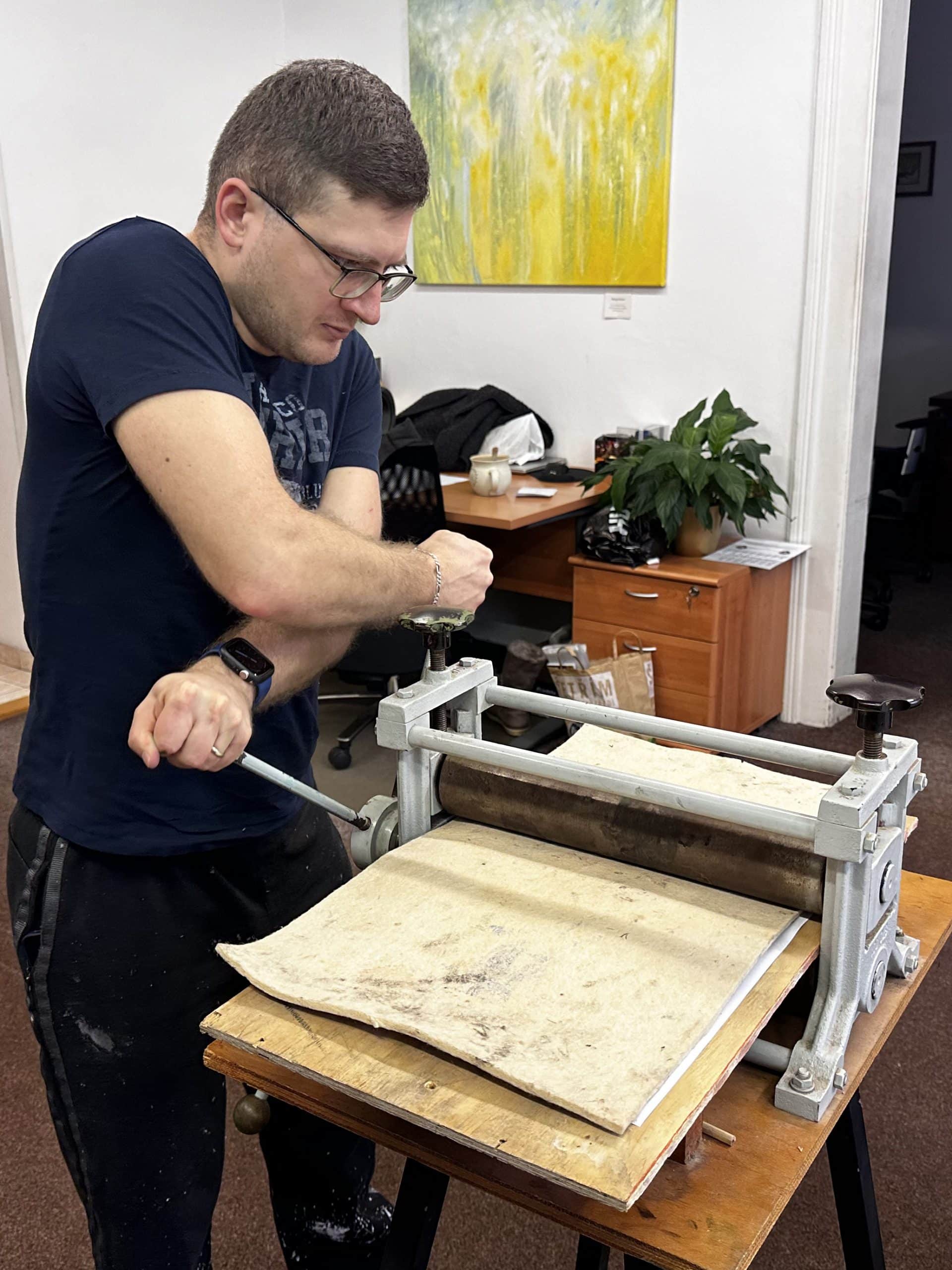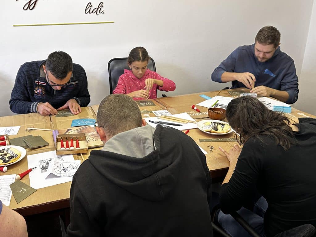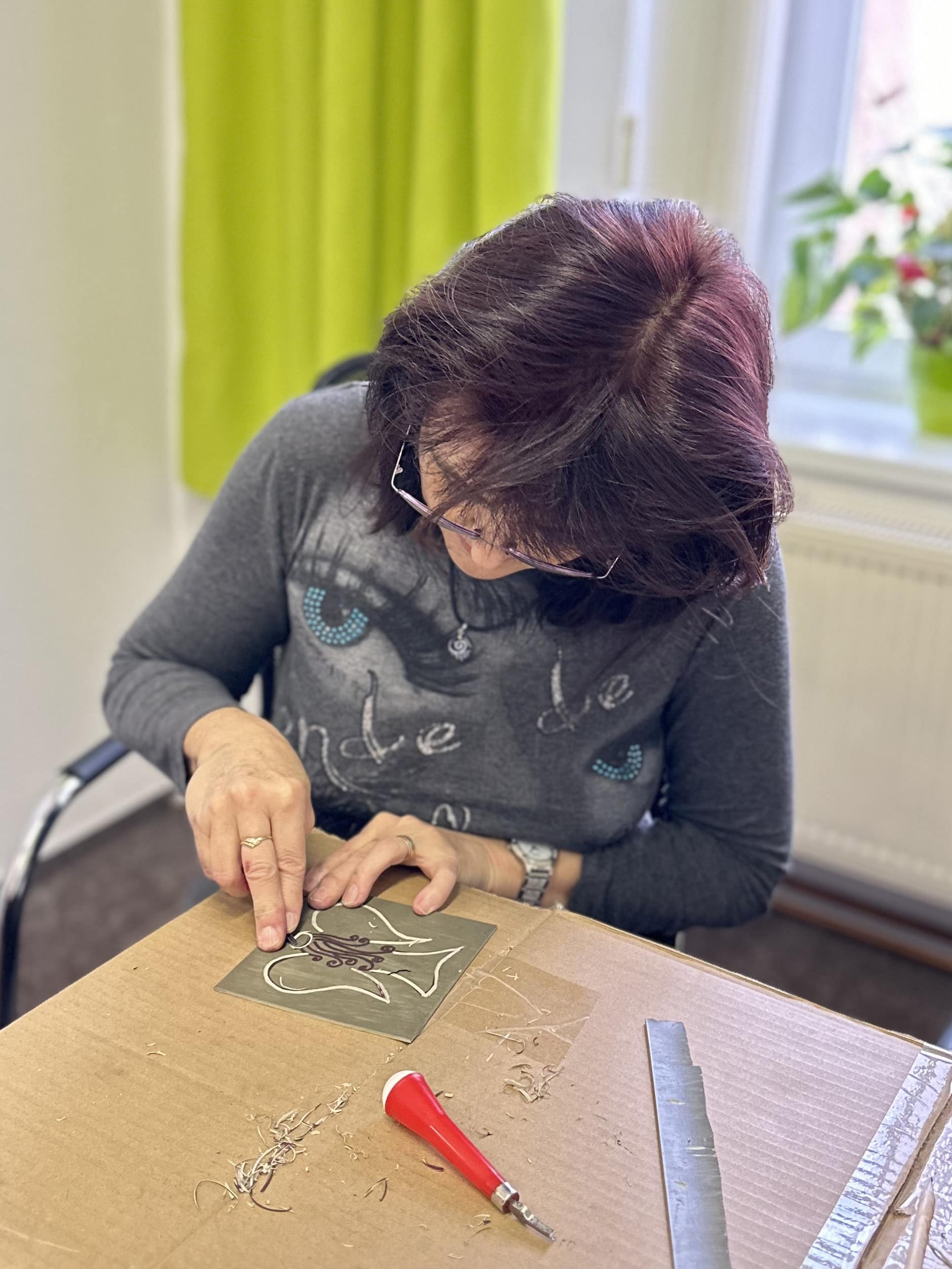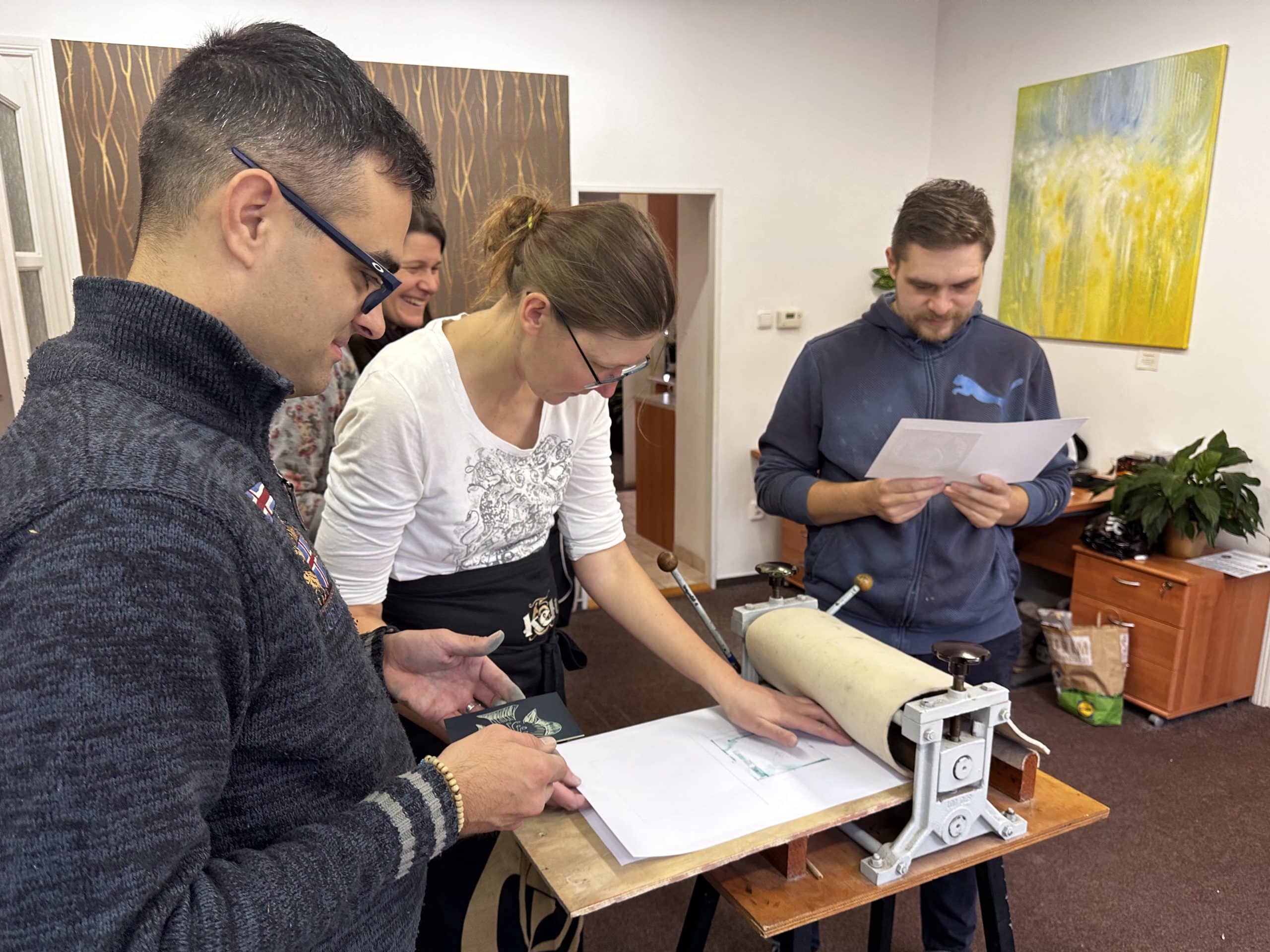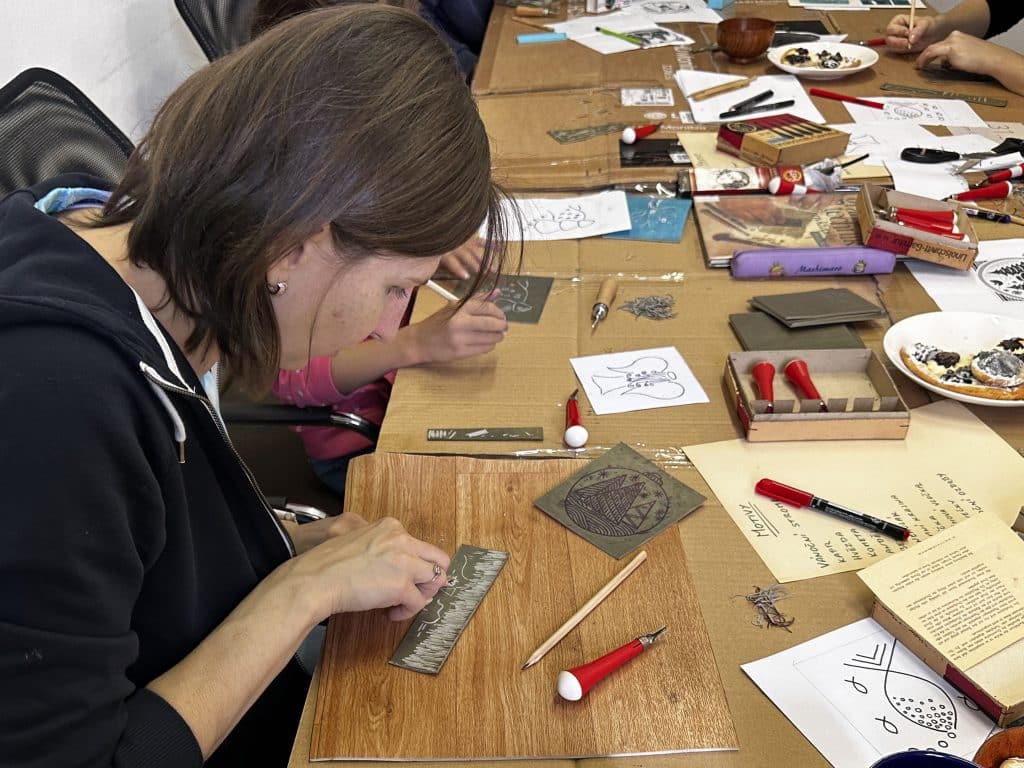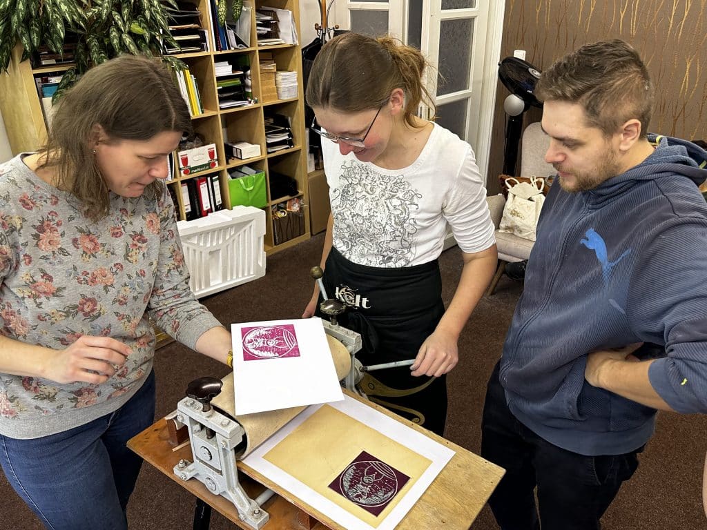 Sešli jsme se jednu prosincovou sobotu, abychom si zkusili celý proces vzniku linorytu od ladění návrhu, rytí matrice až po tisk a musím říct, že od teď se už nikdy nebudu na grafická díla dívat stejnýma očima.