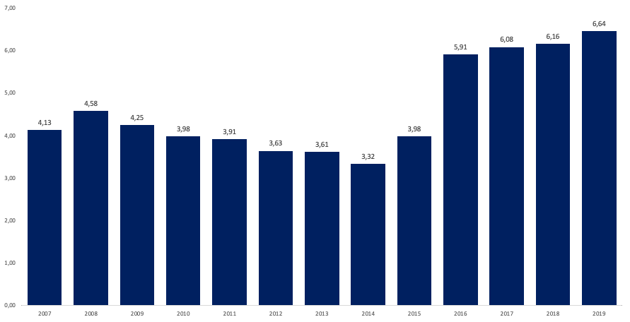 Na indexu dostupnosti cen bydlení můžete vidět, kolik let potřebuje člověk s průměrnou mzdou, aby si v ČR mohl pořídit standardní byt. (V Praze jsme přibližně na dvojnásobku republikového průměru.) Běžný člověk na pořízení bytu potřebuje téměř sedm let svého příjmu a toto číslo postupně narůstá. To je faktor, který bude dlouhodobě zvyšovat poměr lidí, kteří na vlastní bydlení nedosáhnou a budou bydlet v nájmu.