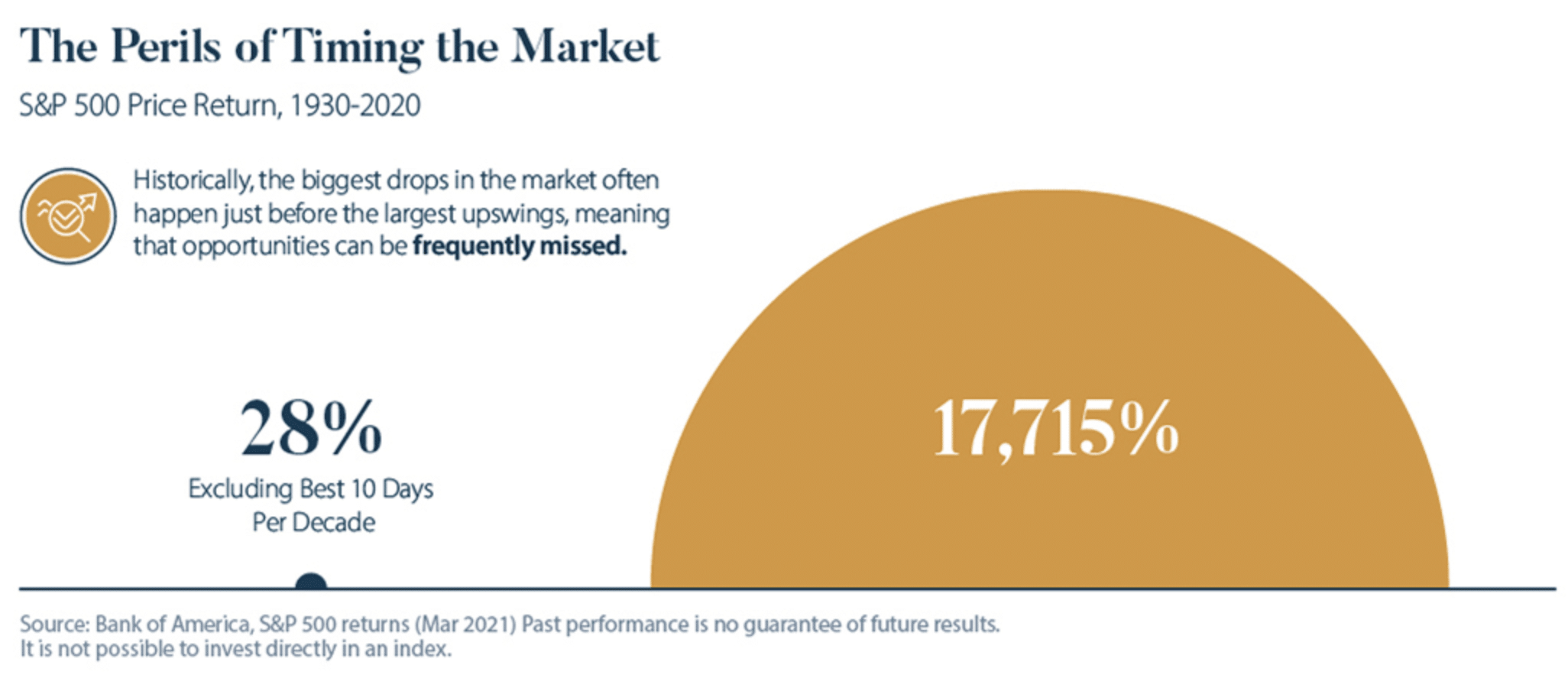 Našel jsem vypovídající statistiku, která ukazuje rozdíl mezi výsledky dlouhodobých pasivních investorů a snahou o časování trhu. Stačí, abyste v každé dekádě od roku 1930 minuli jen 10 nejlepších dní, a namísto zhodnocení 17 715 % by váš výnos za celou dobu byl jen 28 %!