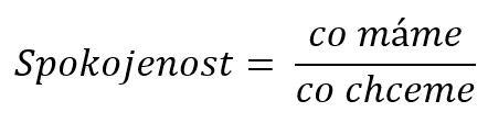 Brooks popisuje spokojenost jako poměr mezi tím, CO NYNÍ MÁME, a tím, CO CHCEME.