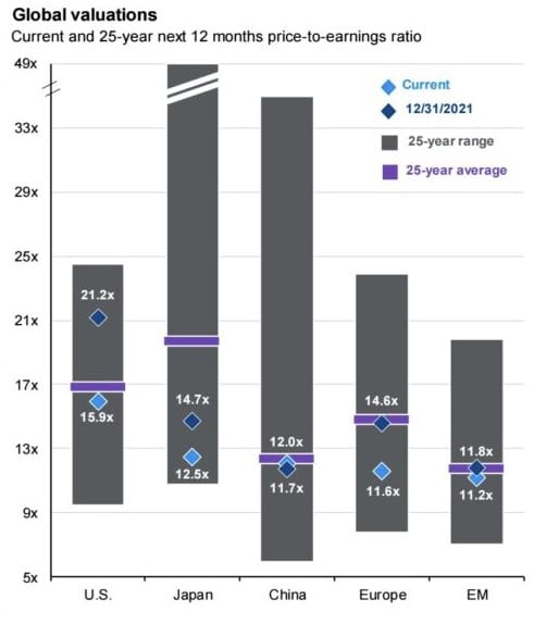 Americké akcie se koncem roku 2021 obchodovaly s násobkem zisků P/E 21. Teď se obchodují za P/E 15,9. To je hodnota pod průměrem posledních 25 let.