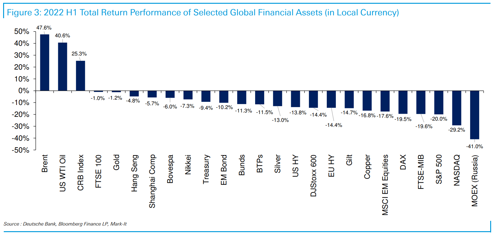 Tohle je o poznání jiný pohled než před rokem! Ještě koncem roku rostlo skoro vše, teď se díváme na graf, kde roste jen cena ropy. Ta přidává pod kotel už tak vysoké inflaci a celkový problém poklesů ještě více přiživuje.