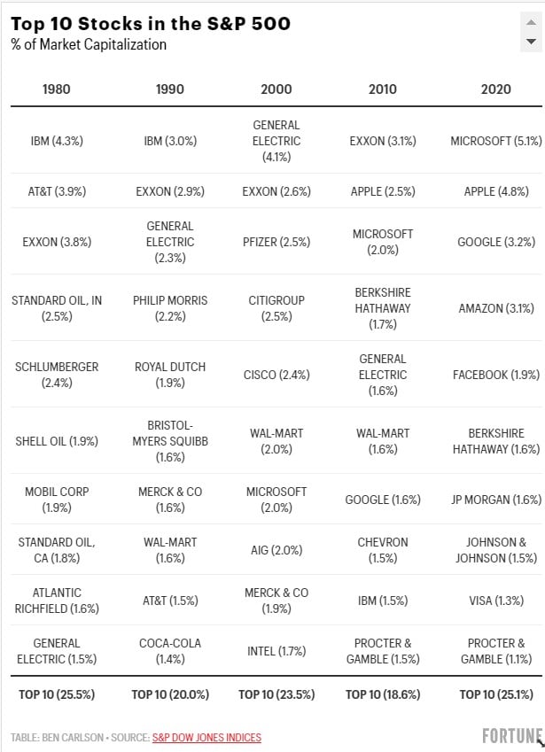 https://www.visualcapitalist.com/oldest-companies/ https://awealthofcommonsense.com/2020/02/5-companies-make-up-18-of-the-sp-500-should-investors-care/