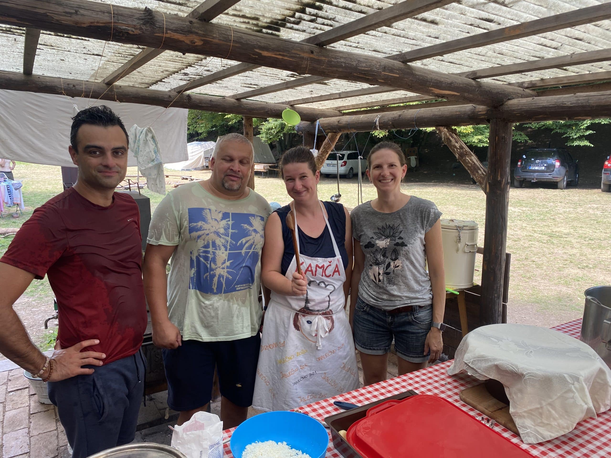 Můj obrovský obdiv má každý, kdo se podobným činnostem věnuje celý rok. Často mě uvádí v úžas, s jakou lehkostí a trpělivostí dokáží tito lidé řídit ostatní jak v běžném provozu, tak i ve vypjatých situacích, kdy musíte rozhodovat rychle a bezchybně. Můj obdiv mají i za to, že berou svůj osobní čas a čas ze svých dovolených a věnují se nezištně někomu jinému. A není to vždy snadné – na fotce jsme měli za sebou vaření u kamen v otevřené kuchyni při venkovní teplotě 37 °C 😅